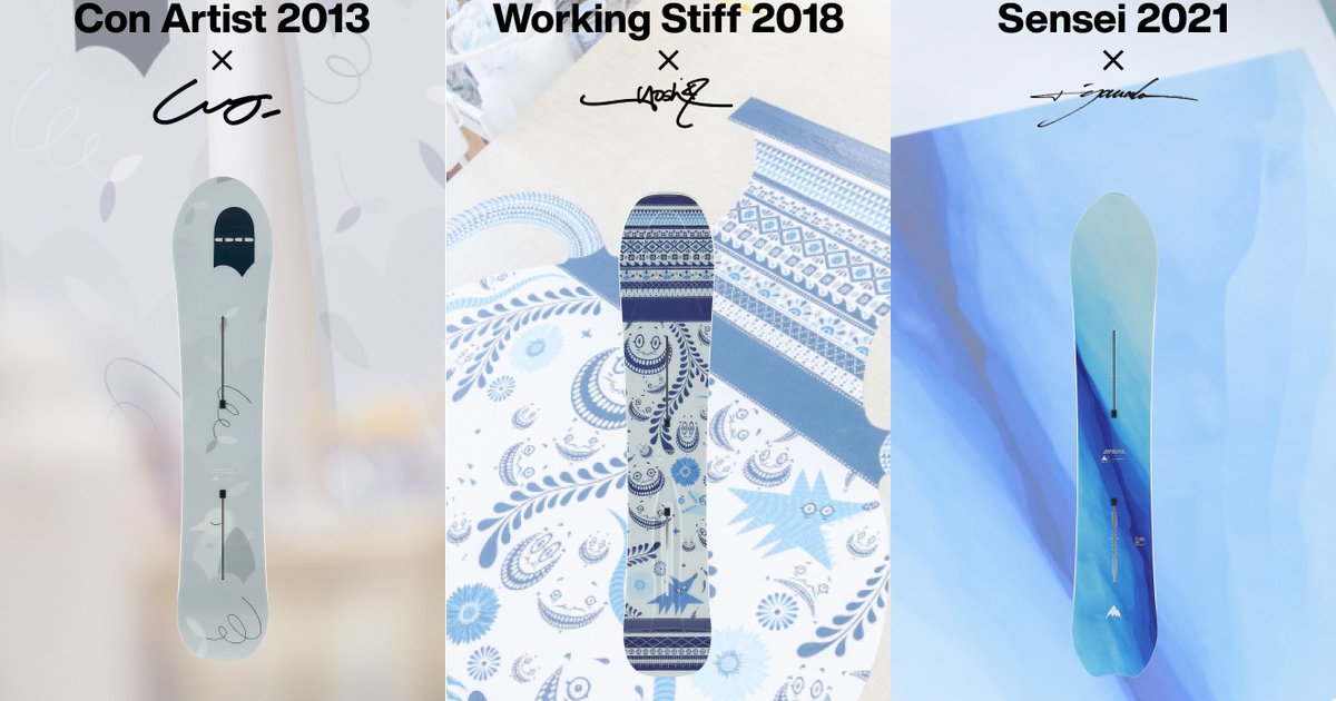 今回3人の日本人アーティストの手により、Family Tree3本が生まれ変わった姿で復刻します。どれも数量限定の超貴重なボードです。Burton.com, Burton Flagship Tokyo, Sapporo, Nagano, Osaka, Burton Store Kanda, Sendaiにて販売予定です。