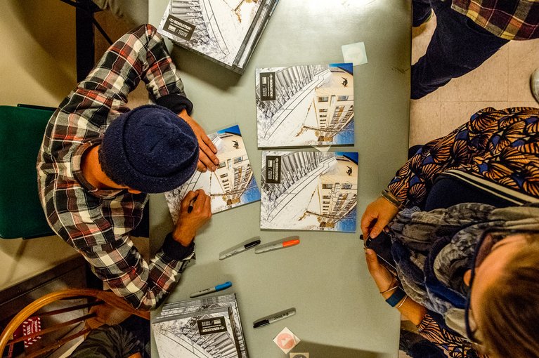The guys at Craig’s love nerding-out on gear with the Burton team riders, so they invited Ben to build a special board. They set him up with a custom deck featuring some top secret experimental materials. He chose the base graphic from Jeff Brushie's iconic first pro model, and left the topsheet white so he could customize it with paint markers.