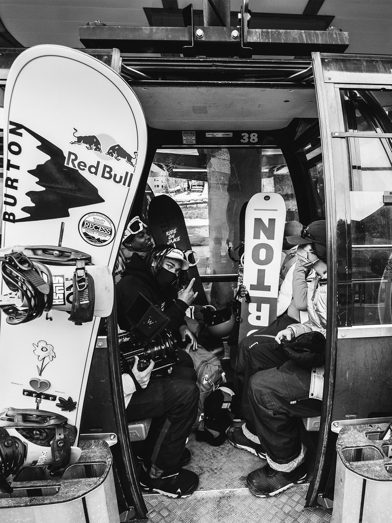 George: Let's talk about how we put that trip together. In November, we were having a conversation about how you guys wanted to help change the perception of snowboarding from being a predominately white sport. Did the thought of inviting Ferg and his friends factor into that at all?