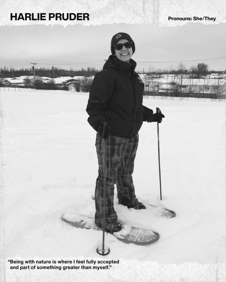 Being with nature is where I feel fully accepted and part of something greater than myself. I feel a true sense of belonging and connection when I'm on the land. - Harlie Pruder (She/They)