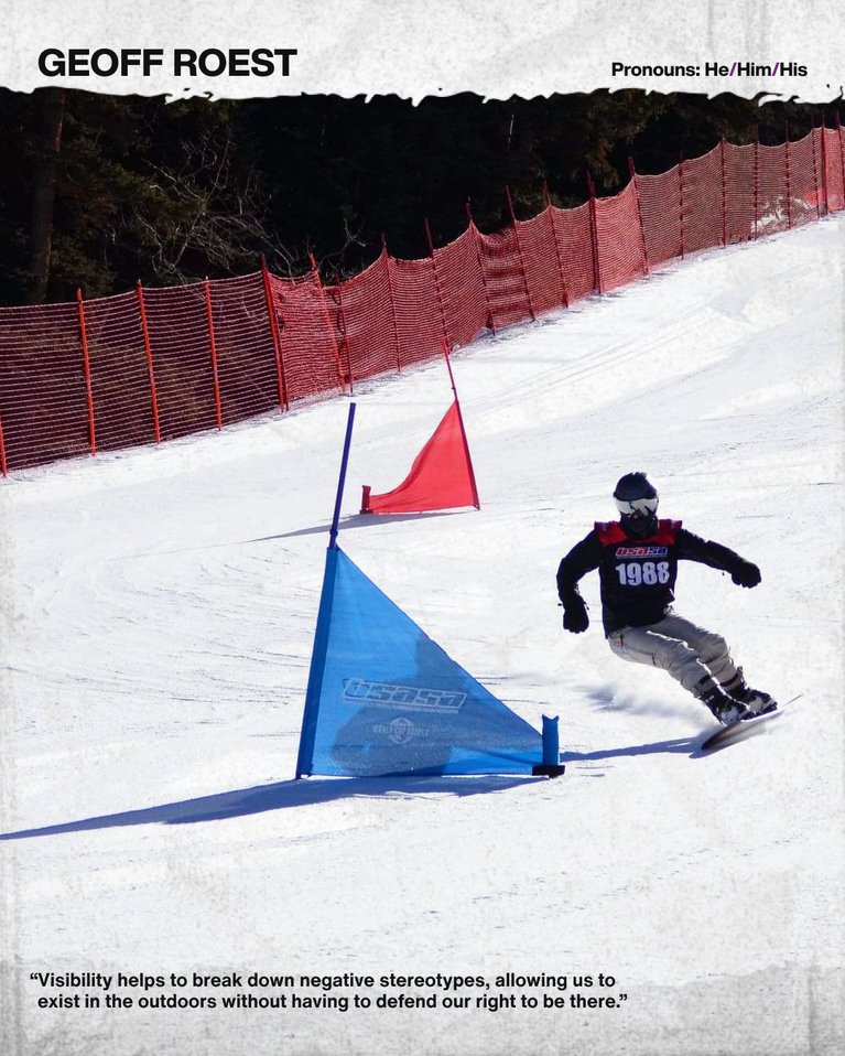 LGBTQ+ people deserve space everywhere, including the outdoors. Visibility helps to break down negative stereotypes, allowing us to exist in the outdoors without having to defend our right to be there. - Geoff Roest (He/Him/His)