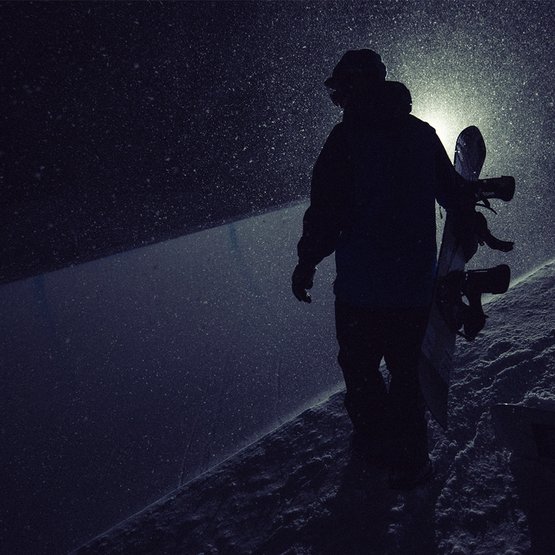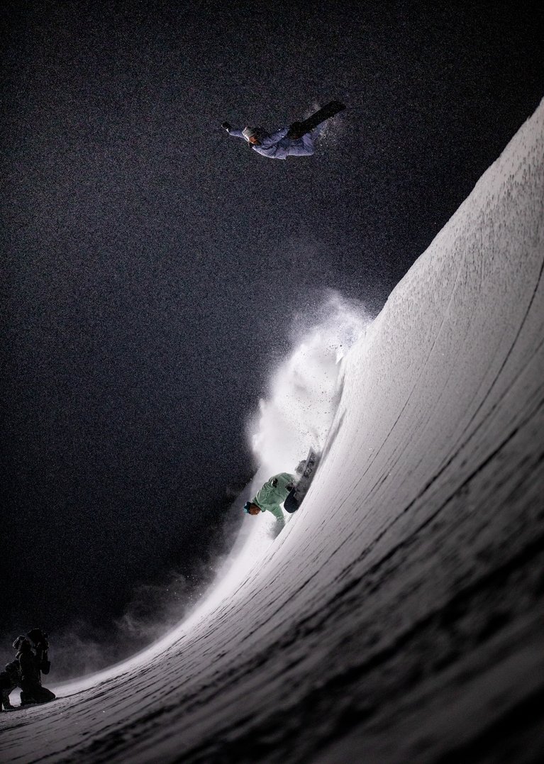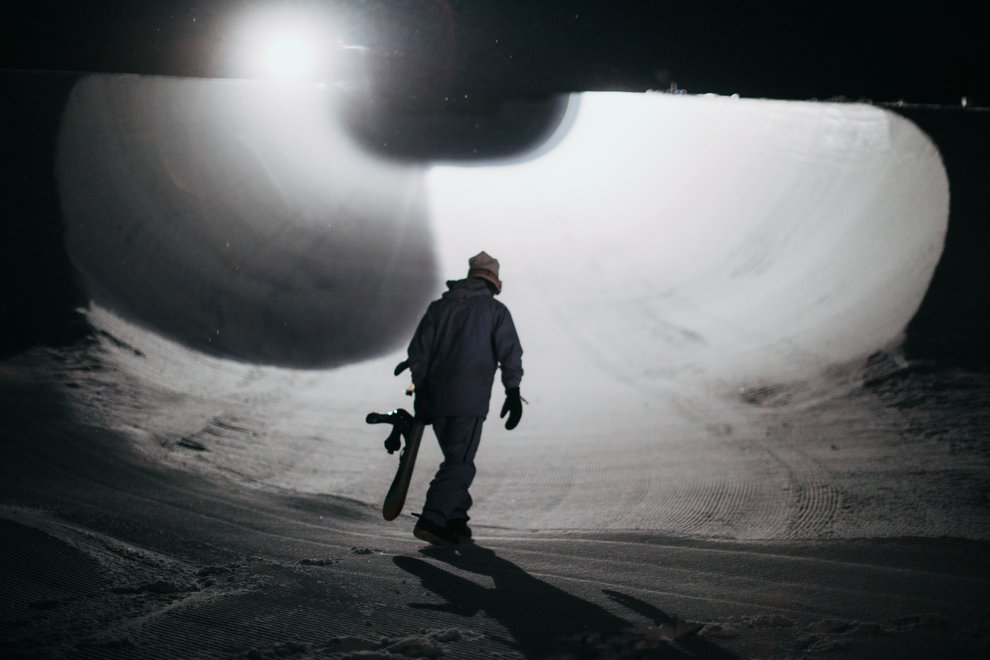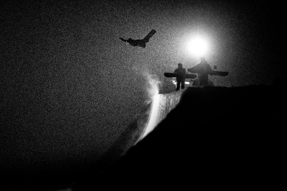 Two days prior to the shoot, riders were standing at the top of the very same pipe, surrounded by TV cameras, judges and fans. Lighting up the pipe for this session allowed riders to steer away from runs that yield the most points in the eyes of judges and focus on expressing their snowboarding through their personal style and favorite tricks.