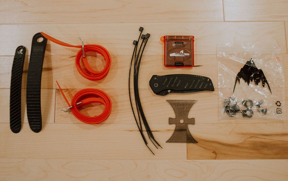 The snowboarding industry has done an amazing job of creating split gear that is built to last and rarely fails. That said, when you use your gear as much as I do, things can break. Missing something as small as a binding screw can turn you pow-day upside down. That’s why I always keep a slew of spare parts in my pack. Here's what I keep for spare parts: