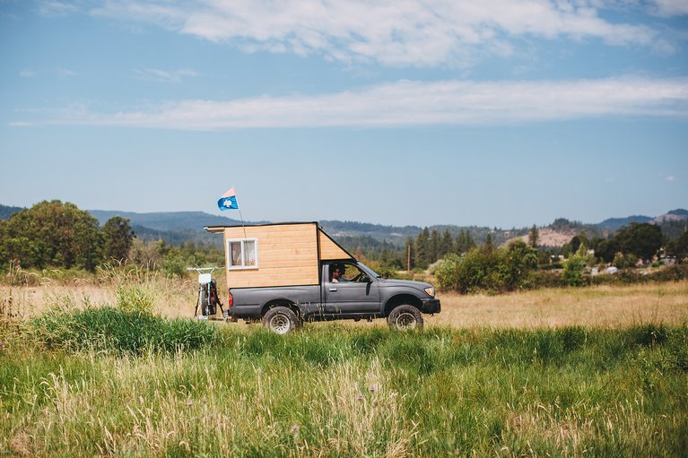 第一の目的は、マウントシャスタのスノーラインにたどり着くこと。もちろん、道中で遭遇するあらゆる出来事への準備もOK。クルーの嗅覚に導かれるまま未舗装の道を走らせていると、改めて周囲の大自然が放つスケール感に驚かされます。クリスタルショップやドレッドヘア、エイリアンウォッチャーで賑わうエリアを通過し、ちょうど良いスポットを発見。テントを張って、ひとまずチルモードに。