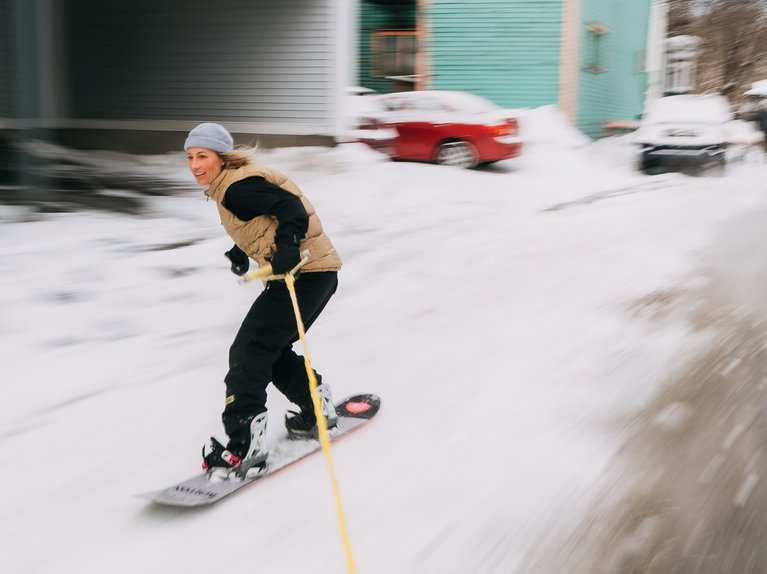 DIY - build your own park. Most yards go unused in winter. So why don't we convert them into a homemade mini-park? All you need is snow, a slight incline and of course permission if the land is not yours. Valuable tools include shovels, some salt (to prepare the takeoffs) and maybe with a little creativity you can even incorporate an obstacle or two from everyday life. How about PVC pipes, tires, a swing or walls? Let your creativity run wild and “jib it”!